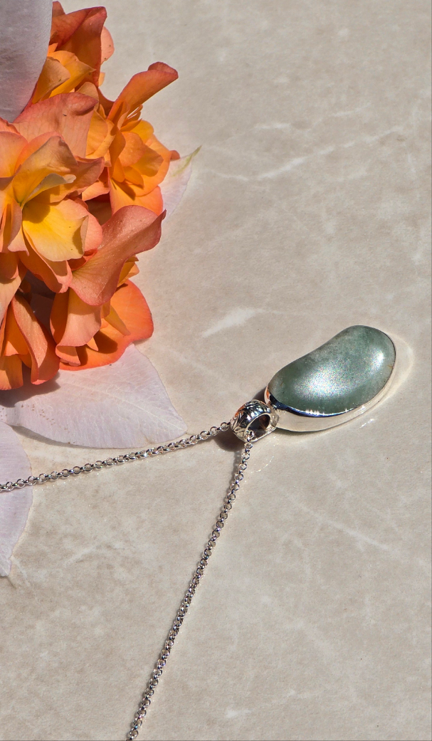 Soft, serene, and full of quiet charm, the Little Bean of Calm is a gentle talisman for peace and grounding. With its soothing green tone and bean-like shape, this one-of-a-kind necklace brings the spirit of nature and calm intention into your everyday.