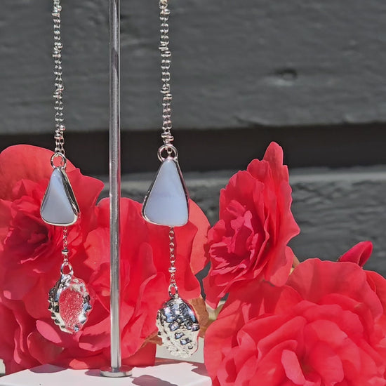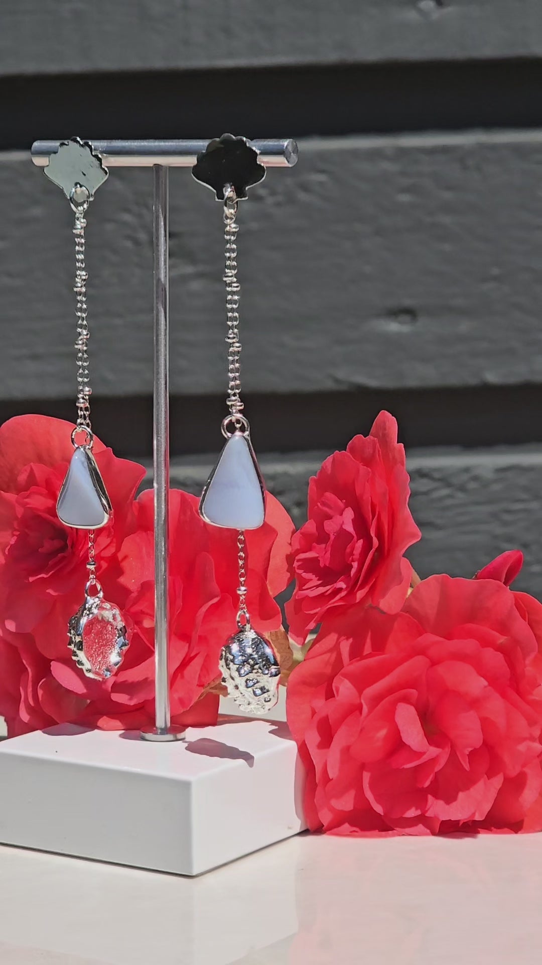 Inspired by the gentle rhythm of the sea, the Seaside Whisper Earrings are a wearable homage to ocean serenity and coastal treasures. Thoughtfully handcrafted, each element tells a story of summer shores and soft waves, from the natural textures of a sandcasted seashell to the calming hue of blue lace agate. Whether you’re longing for the coast or carrying a piece of it with you, these earrings capture that peaceful shoreline feeling in every sway.